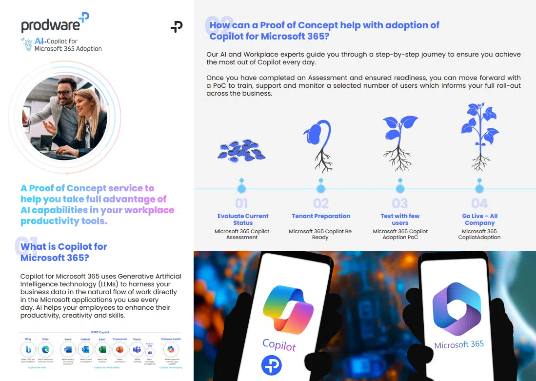 That’s why Prodware provide a step-by-step service to help you get ready and test in a PoC mode, by limiting the training and use of Copilot for Microsoft 365 to help qualify how you will expand across the organization.