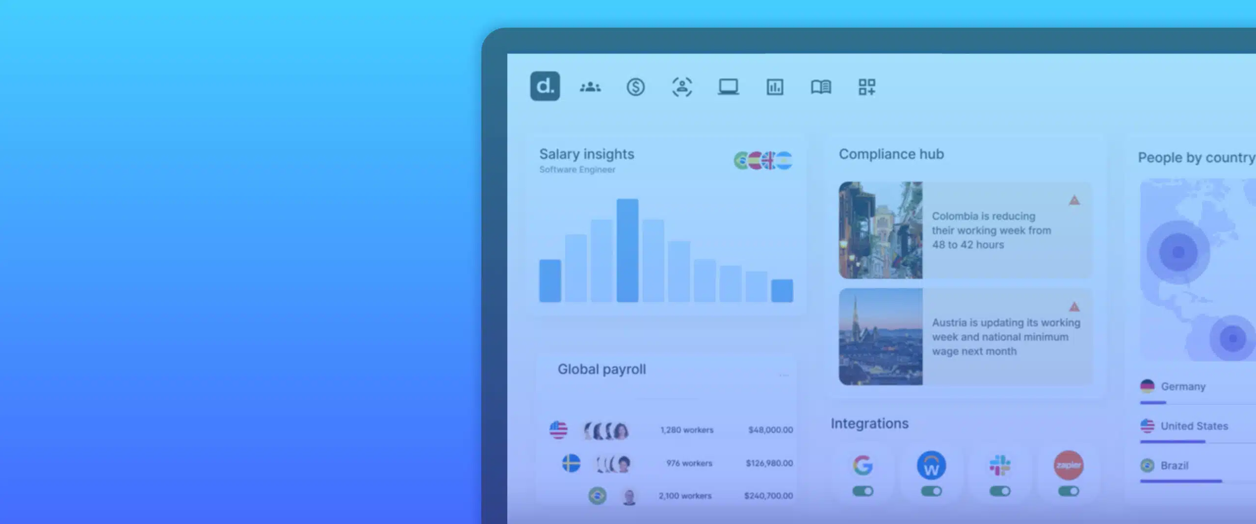Manage payroll, HR, compliance, and performance in over 150 countries, on one unified platform. Consolidate tools, unify data, cut overhead costs and gain real-time insights into your global workforce.