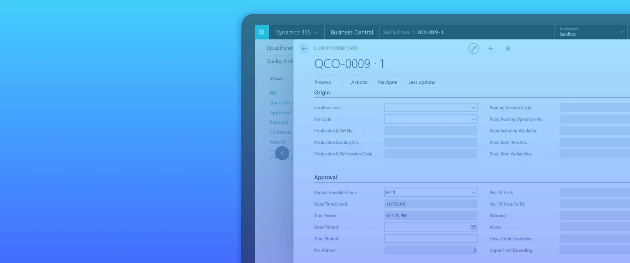 Quality Control functionality helps manufacturing and distribution companies measure and manage quality compliance throughout their production and inventory processes. It manages central product specifications, quality orders and shipments.